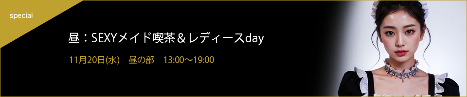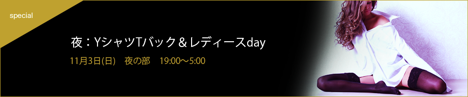 この日はYシャツ・スーツでご来店の単独男性様は入場料1000円割引!